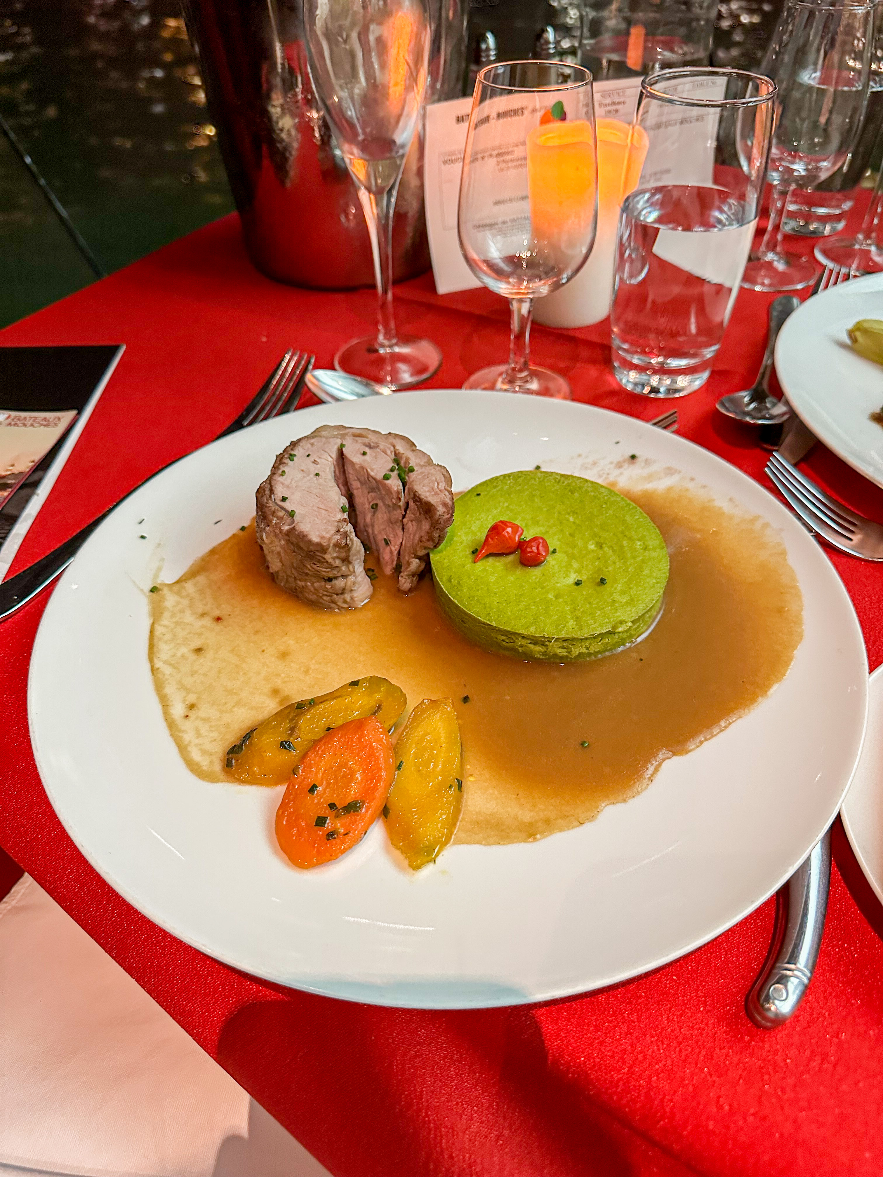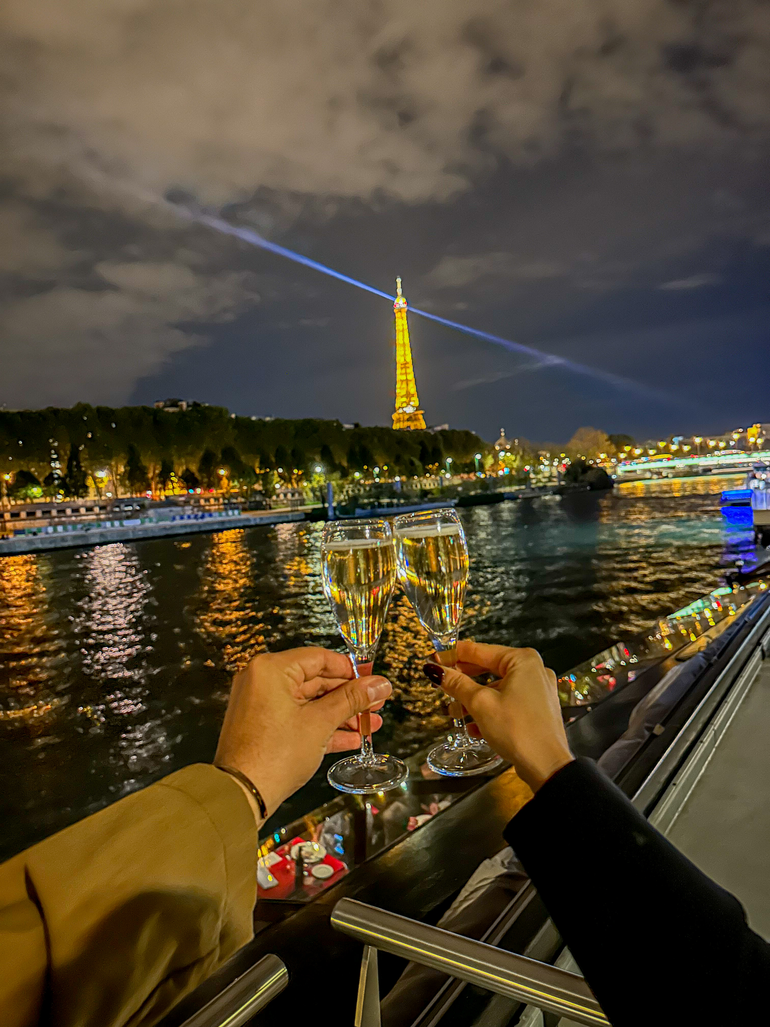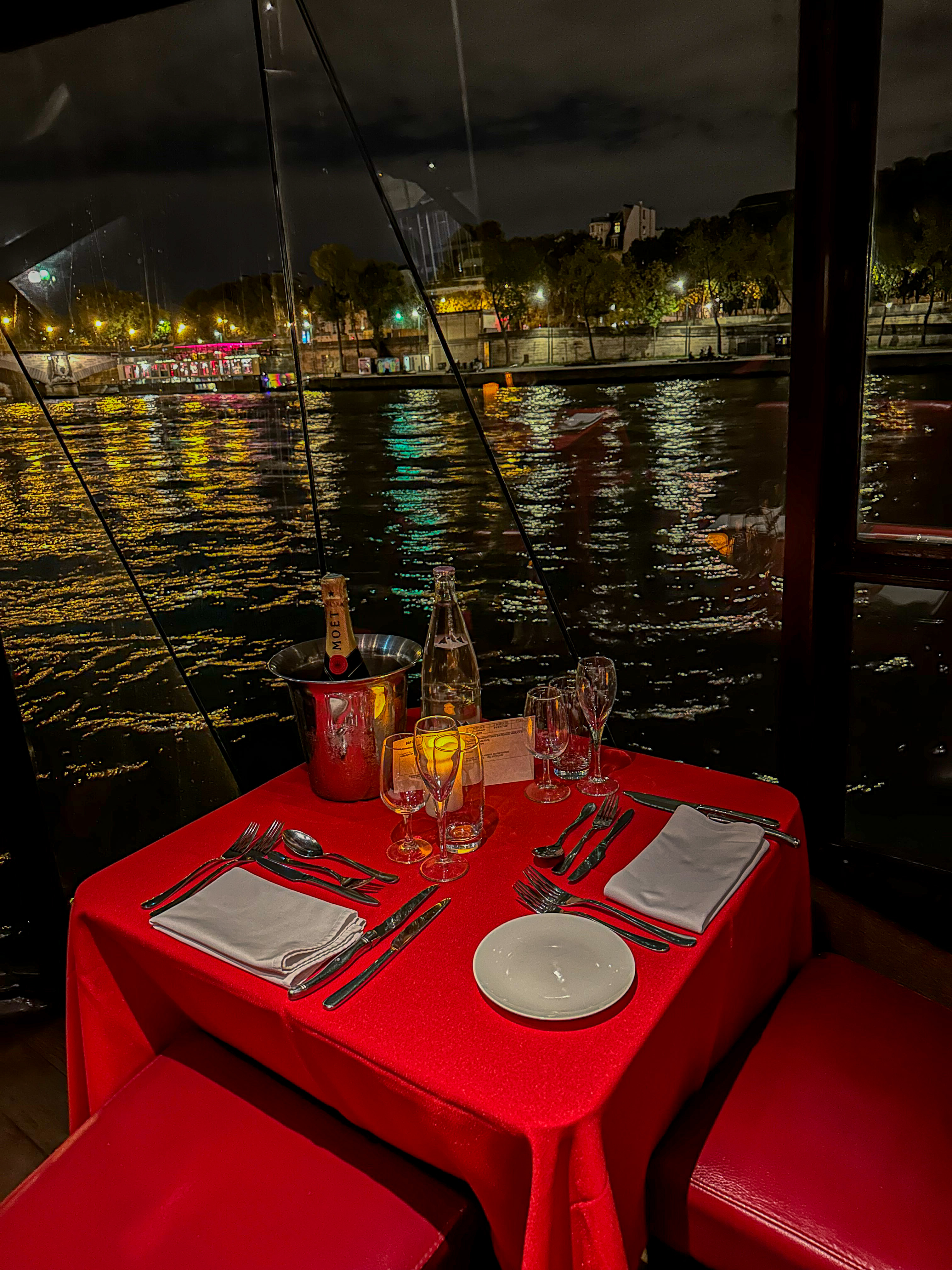Throughout the evening, the attentive and professional staff ensures that your dining experience is nothing short of extraordinary. With impeccable service and attention to detail, they add a touch of elegance to an already unforgettable voyage.As the evening unfolds, indulge in a delightful dessert, like the classic crème brûlée or the divine chocolate mousse. Sip on a glass of champagne or fine wine, toasting to the beauty of Paris and the joy of shared moments.